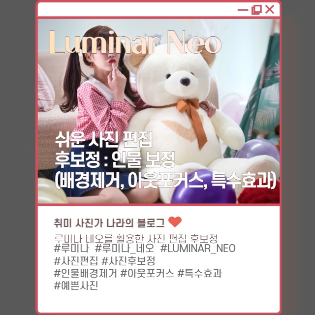 이번 루미나르 네오 사진 편집 방법 포스팅에서는 인물 보정 관련된 내용입니다.
