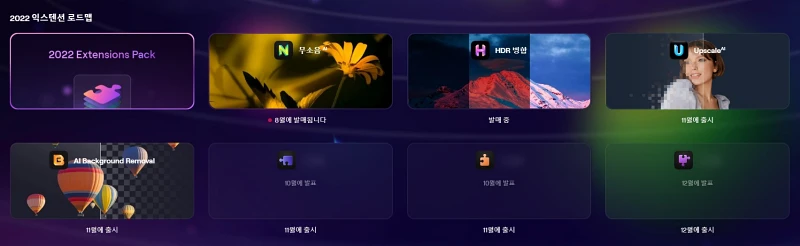 이 확장 팩은 2022년에 총 7개가 순차적으로 공개가 되고 있으며, 현재는 [**HDR 병합**], [**노이즈리스 AI**]가 공개되었습니다.